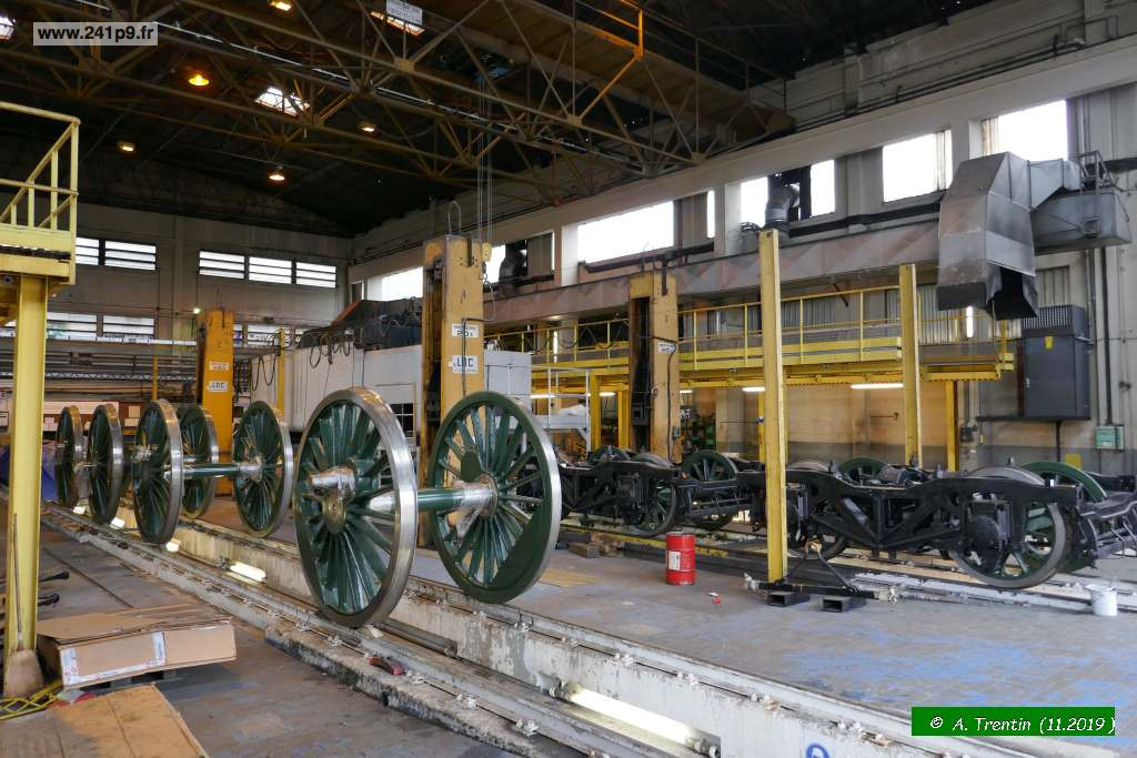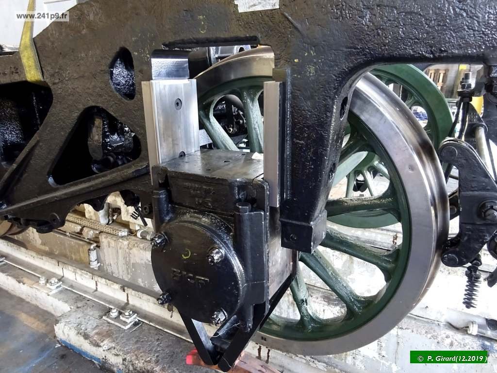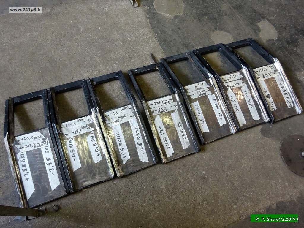 En parallèle, les rappliques des boites ont été refaites, les étriers de suspension qui se logent sur les boites d’essieux ont été remis aux côtes; les cales d’usure latérales remplacées. Pour que les châssis rejoignent enfin leurs essieux, il a ensuite été nécessaire de vérifier et corriger le centrage de chaque essieu dans le corps de bogie (et donc de la voie) en adaptant les épaisseurs.