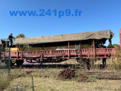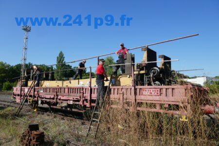 – Mise sous abri des chevalets de levage entreposés pour longtemps encore sur le wagon plat.