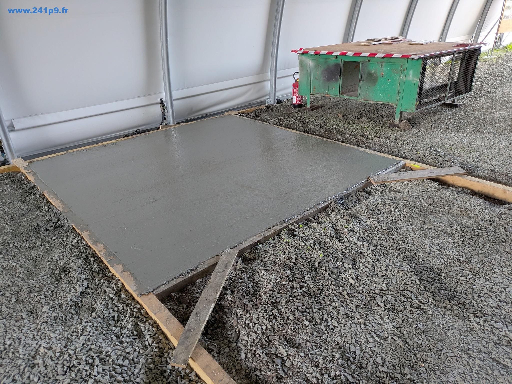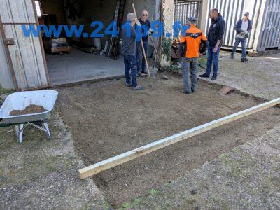 – Mise en place de dalles et accès stabilisés pour le déchargement des machines outils et les postes de travail, devant le garage et sous le barnum.