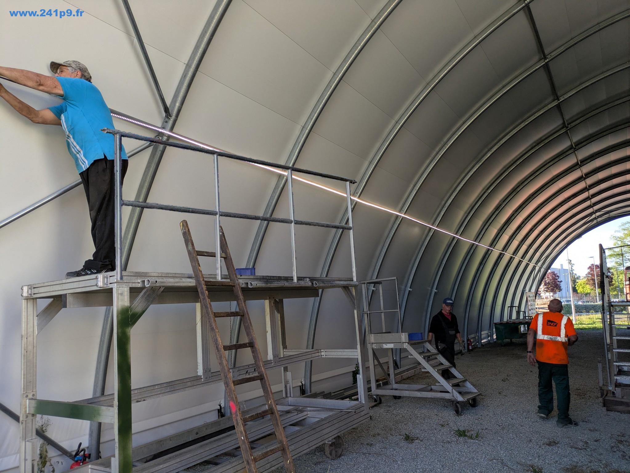 Les prochains travaux vont consister dès début janvier à fermer les deux pignons de l’abri. Deux portails métalliques roulants ont été récupérés du chantier de démolition de Périole à cet effet.