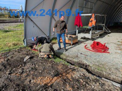 – Creusement de tranchées pour l’alimentation air et électricité jusque dans l’abri. Le mois d’octobre a vu enfin l’éclairage de celui-ci réalisé.