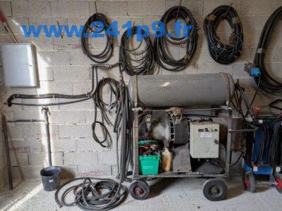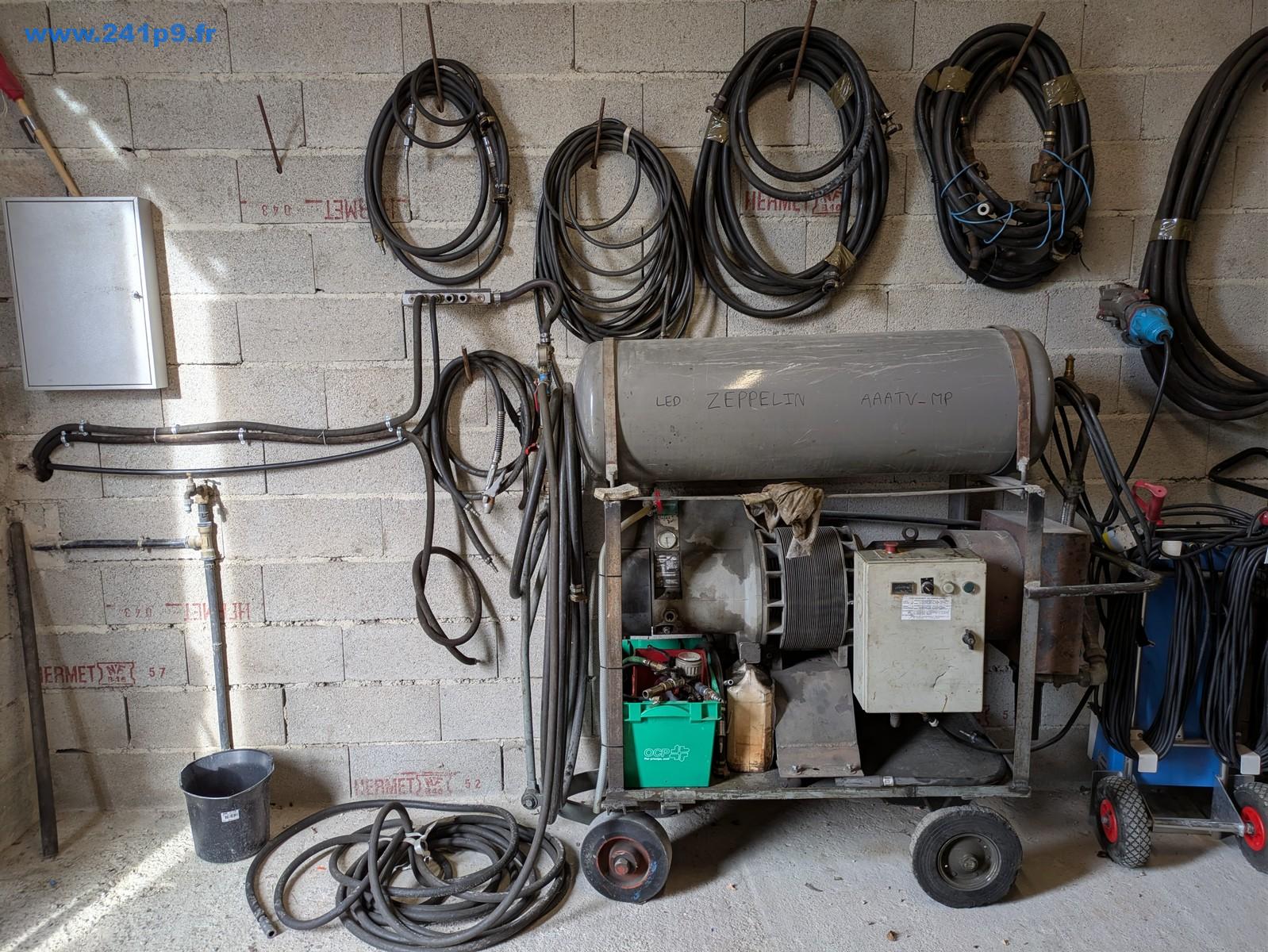 – Petit à petit à Carmaux : Aménagement et cablage air et électricité dans les deux garages mis à disposition. Le compresseur est ici à poste fixe avec réseau de tuyaux souples alimentant aussi l’abri de la machine.